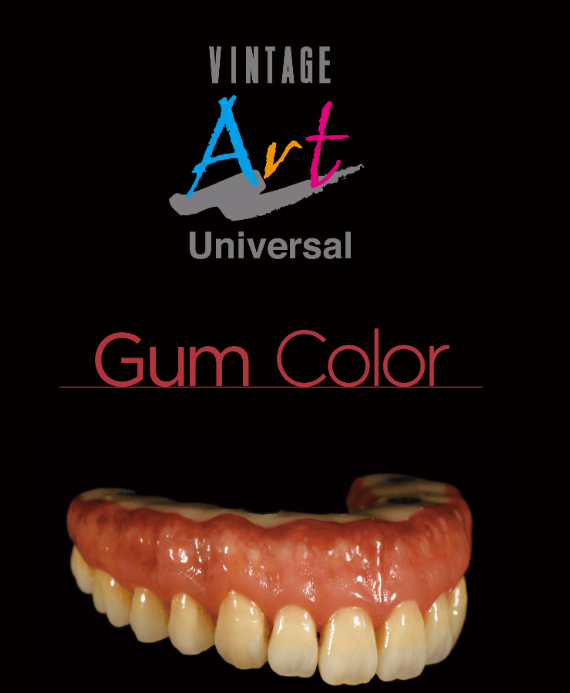 昨年9月、従来より発色の良さに定評がある Vintage Art Universal に新たに 17 色の Gum Color が追加された。中でもビスモディファイアーの 2 色はペーストの粘性調整が可能であるため、歯肉部により立体的なステインによる色調表現を行うことができる。